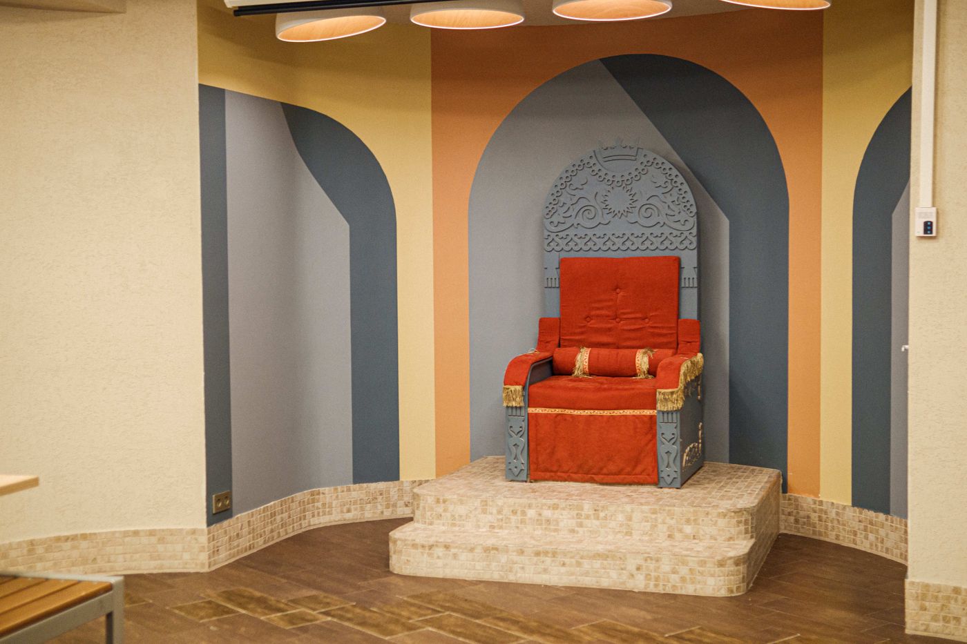 Во втором зале (ул. Лермонтова, 25) также два зала, передвижные столики, кухня, резной трон для фотосессий.