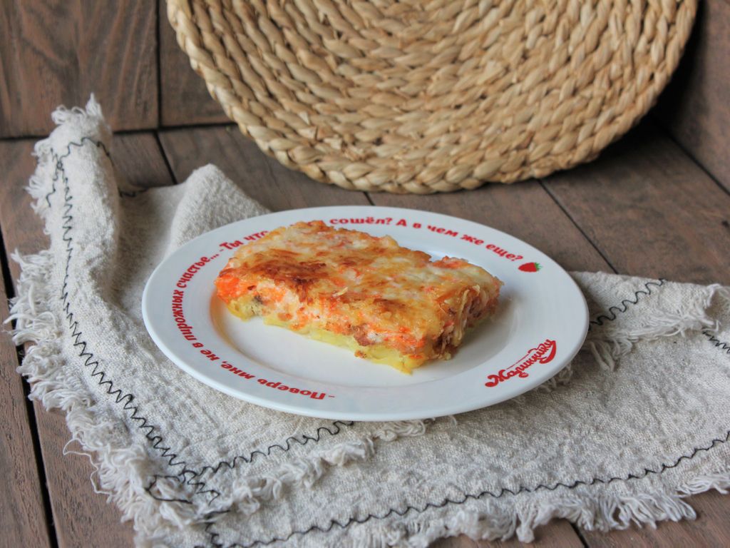 Состав: картофель/горбуша/майонез/морковь/сыр/лук репчатый/соль/масло подсолнечное/перец черный молотый.
