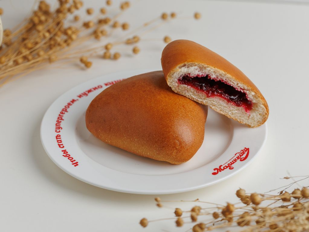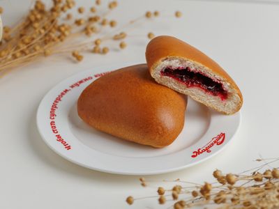 Состав: мука в/с/вишня с/м/вода/сахар/яйцо/масло подсолнечное/дрожжи/маргарин/крахмал картофельный/соль.