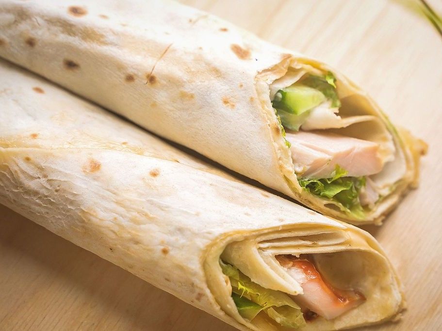Состав: мука/курица копченая/огурец свежий/майонез/лист салата/аджика/масло подсолнечное/соль.