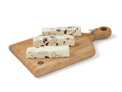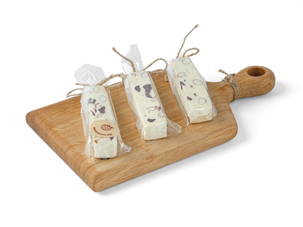 Состав: сахар/шоколад белый/миндаль/клюква вяленая/мед/патока/глюкозный сироп/яйцо/какао-масло.